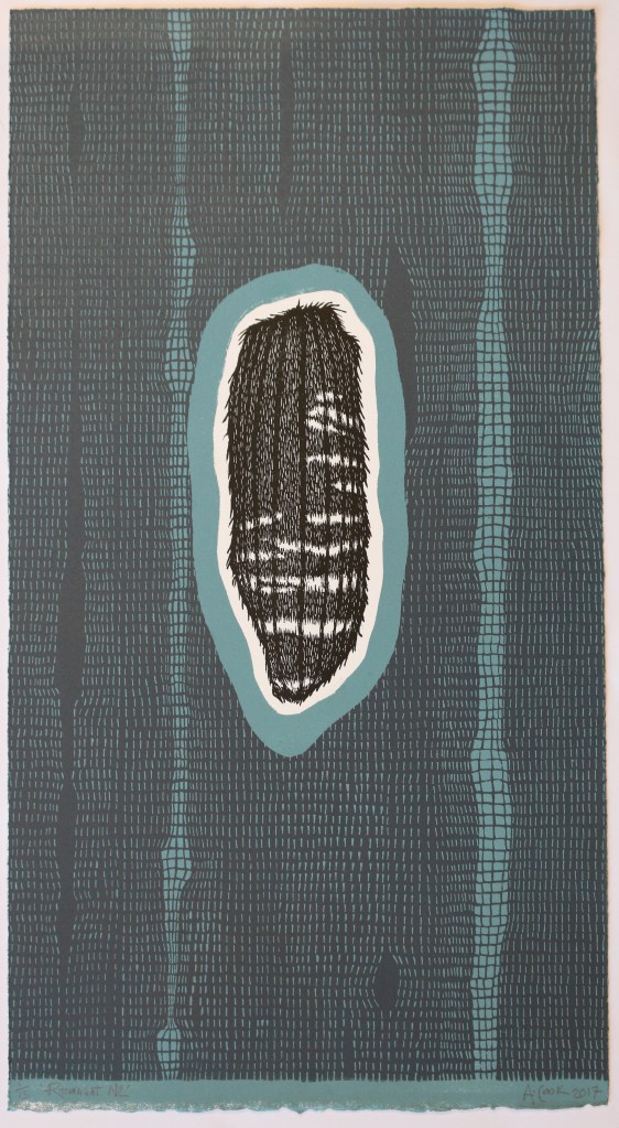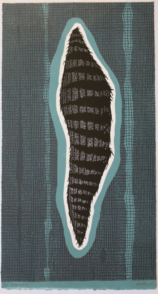 - Remnants series (Thylacine, quoll and numbat remnants), 2018, Linocut, stencil on Arches Rives paper, each 50cm x 38cm, Edition of 15